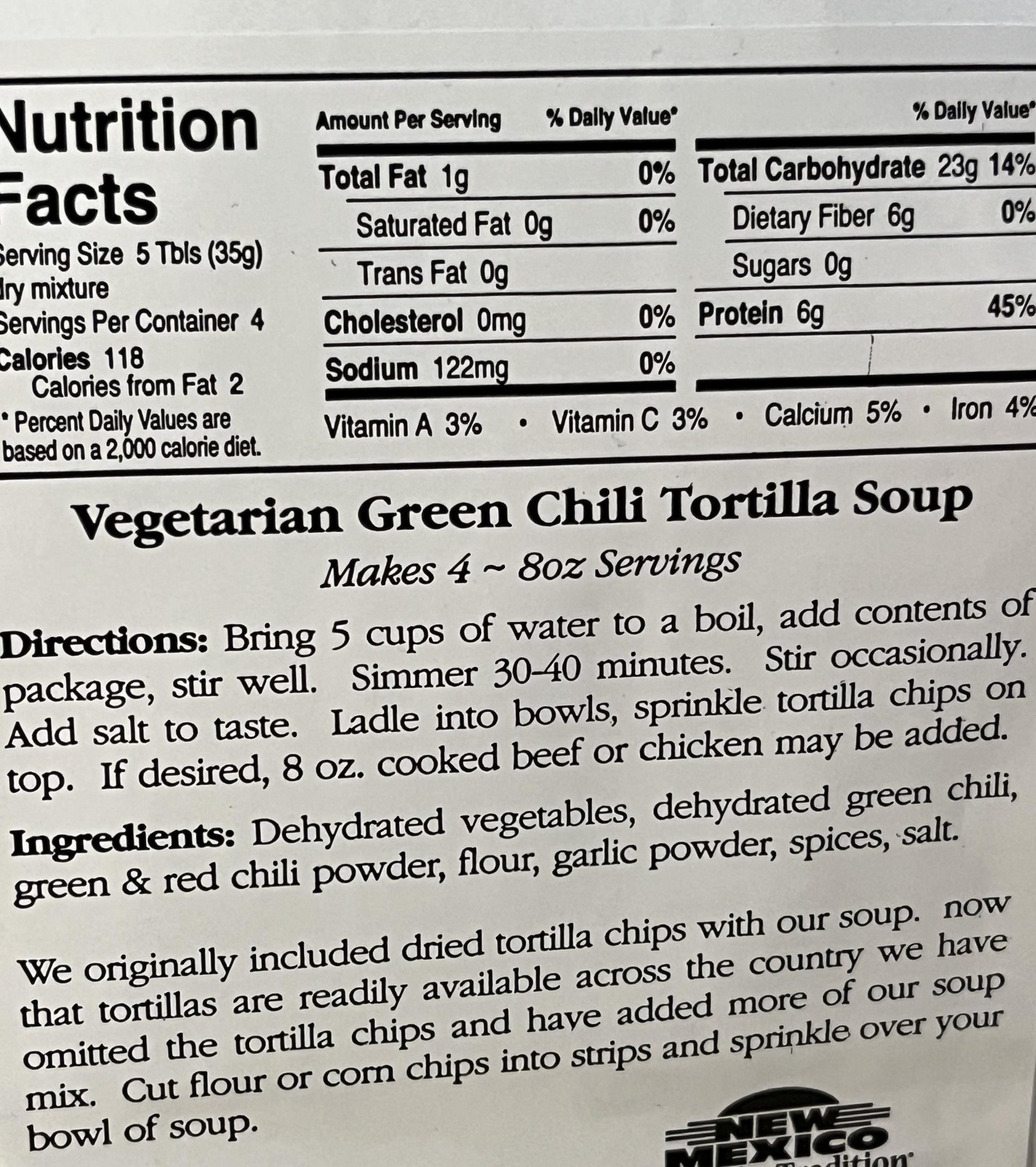 Experience the rich flavors of the Jemez Valley with this mouthwatering Green Chili Tortilla Soup mix. Crafted with premium spices, including the renowned Hatch green chili, this soup is not only delicious but also a healthy choice for vegetarians. No sugar! Simply add water, let it simmer, and in just 40 minutes, you'll have a warm, satisfying meal perfect for a cozy Sunday afternoon. Treat yourself to a delightful culinary adventure!