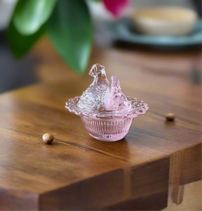 Pink Glass Mini Hen on Basket 2.75" Salt Cellar