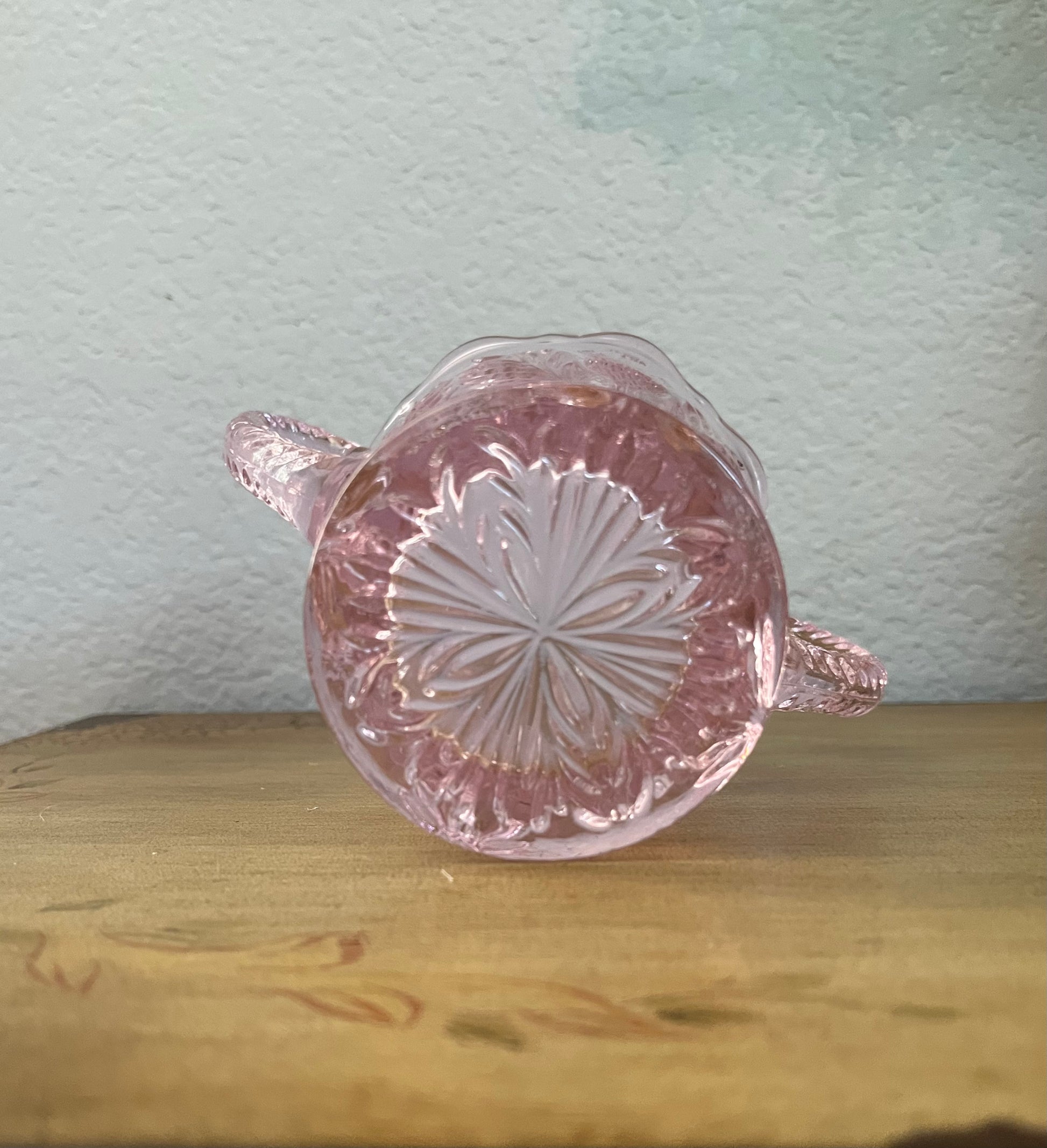 Rose Pink Glass Sugar Bowl Thistle Pattern