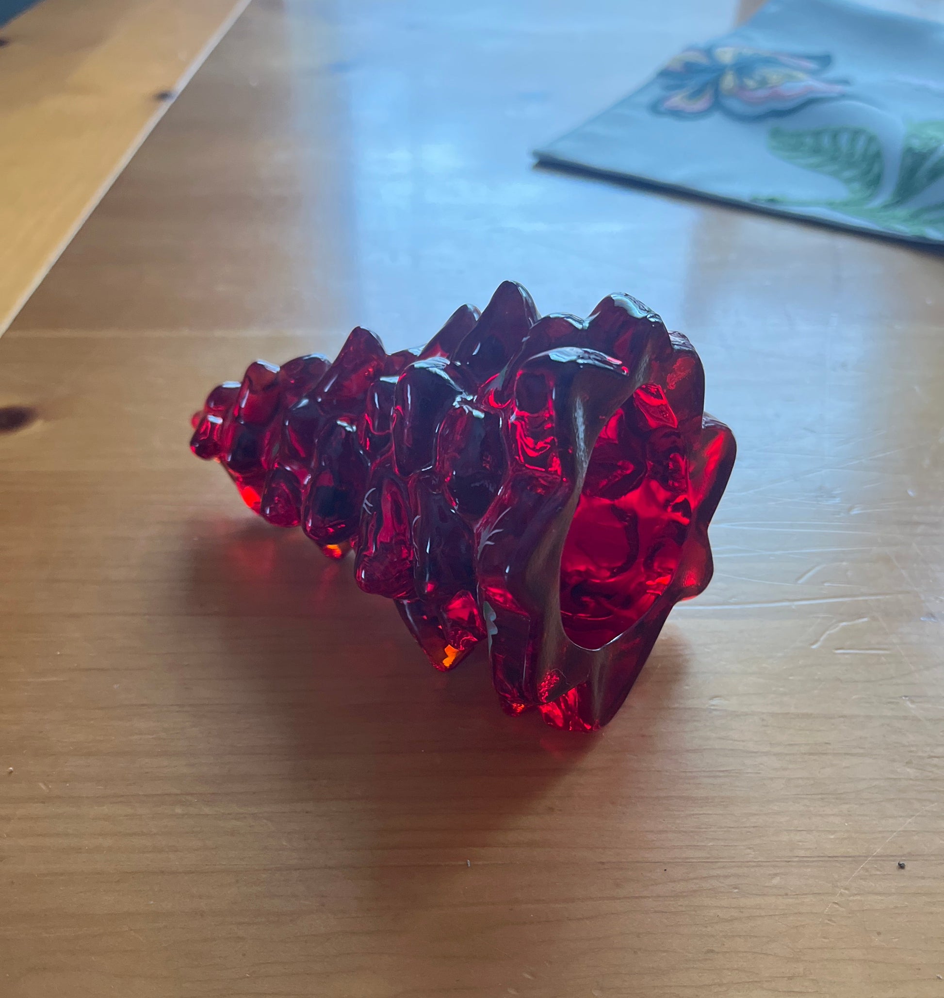 Ruby Red Glass Pine Tree with Hand Painted Holly 5.5"
